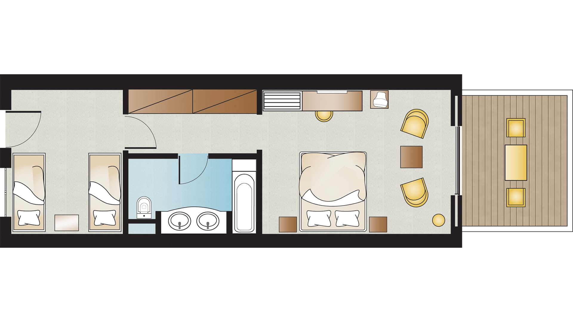 Cleverly designed, Family Rooms ensure space and comfort featuring separate sleeping/living areas. Family friendly with children’s sleeping quarters, they offer comfortable outdoor living among the lush gardens.